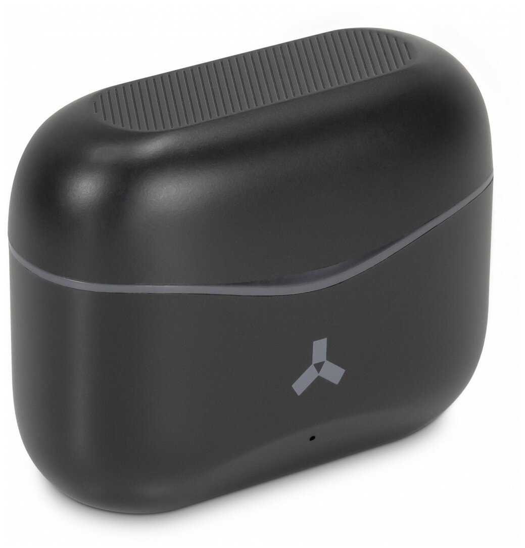 - Компактный кейс с обтекаемым дизайном удобно ложится в руку, а магнитная фиксация наушников предотвращает случайное выпадение.