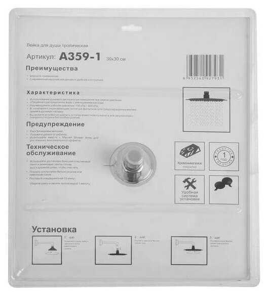- + недорогой, пользуюсь уже месяца 2, подошел идеально к моей душевой стойке, не увидел никакой разницы между моим бывшим верхним душем, цена на которого явно завышена и этим. так что не гонитесь за брендами, этот тропический душ каяественнл выполняет свою функцию