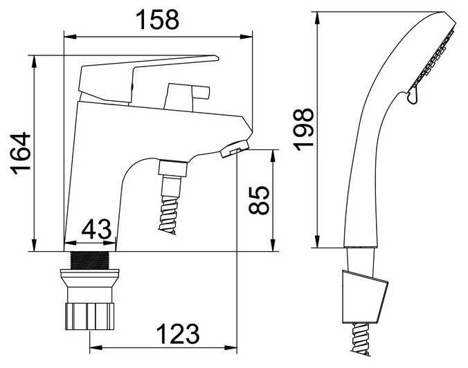 | @Комплектация : | Смеситель, набор для установки, шланг для душа 1, 5метра, лейка 3 режима, гибкая подводка |