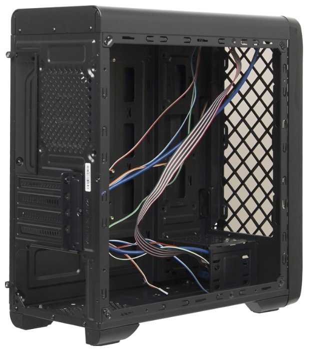 - + Неплохая продуваемость, несмотря на закрытый тип передней крышки, неплохой внешний вид за такие деньги, можно хотя бы какой-то кабель-менеджемнт сделать из-за снимающейся задней крышки.