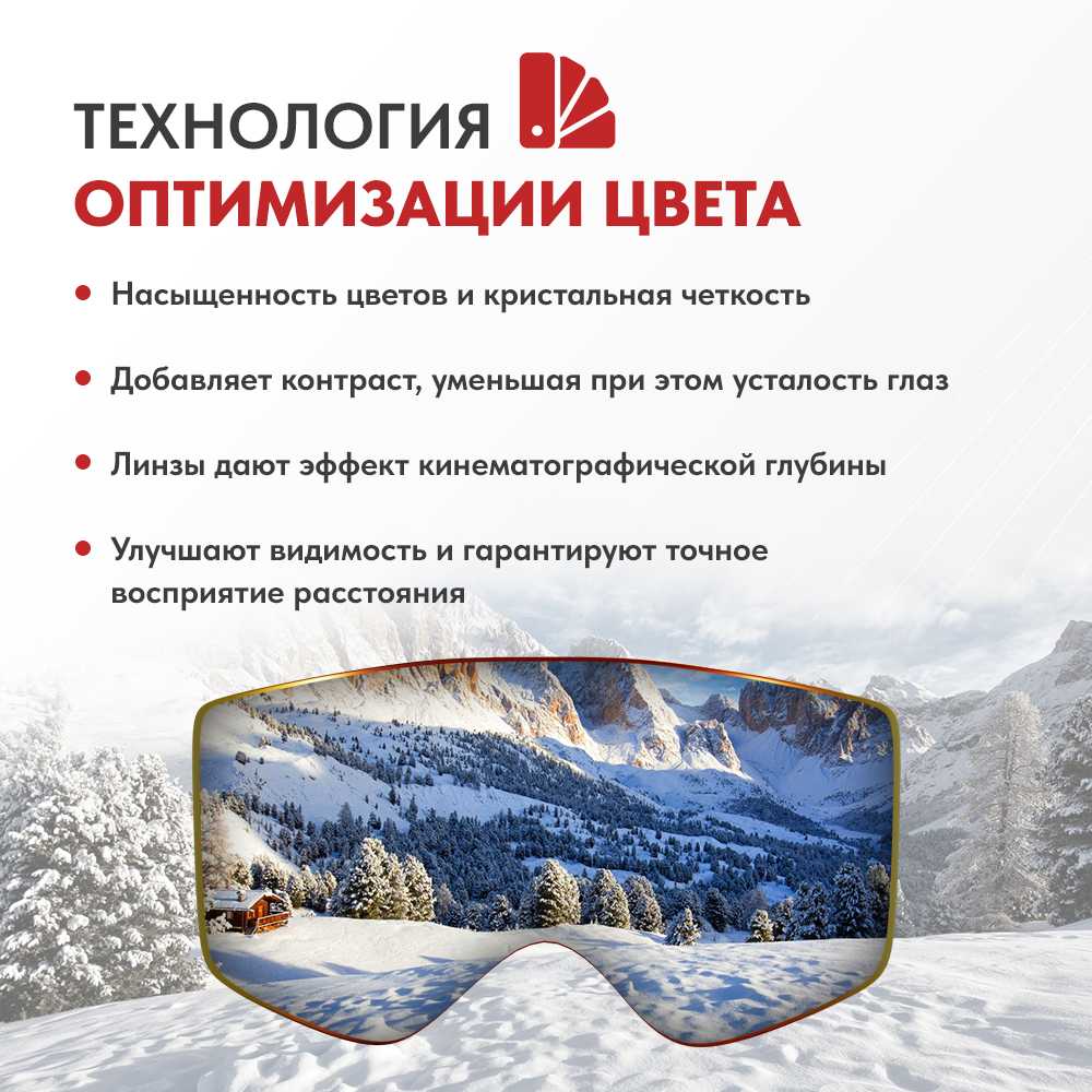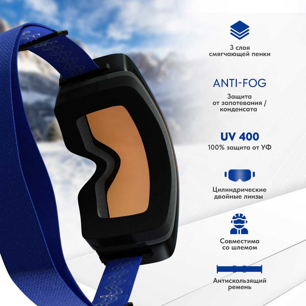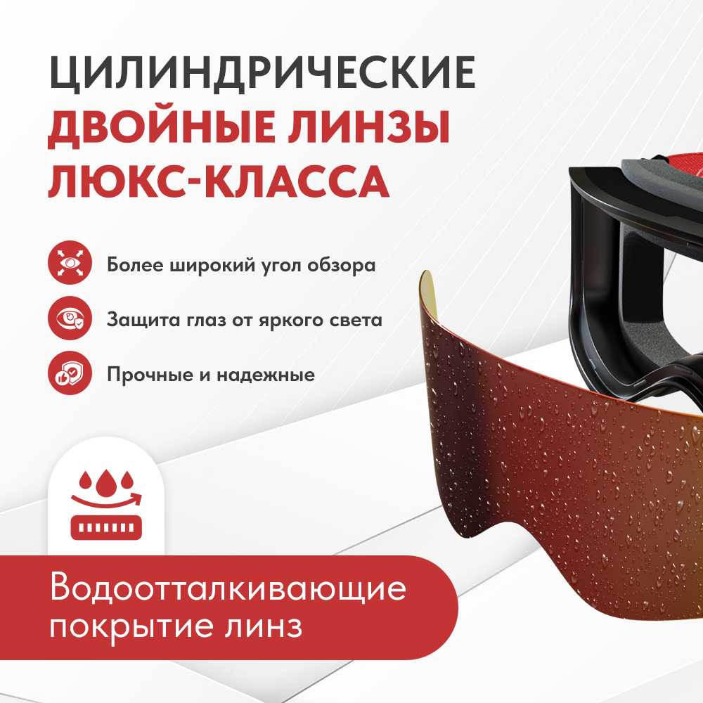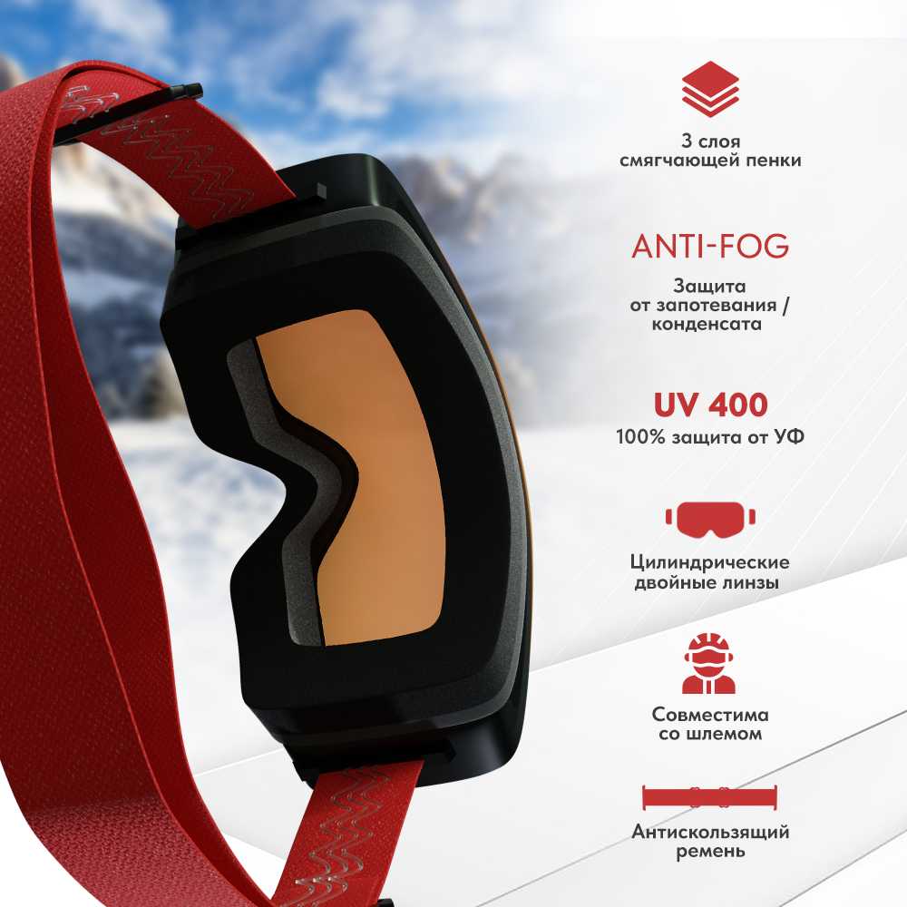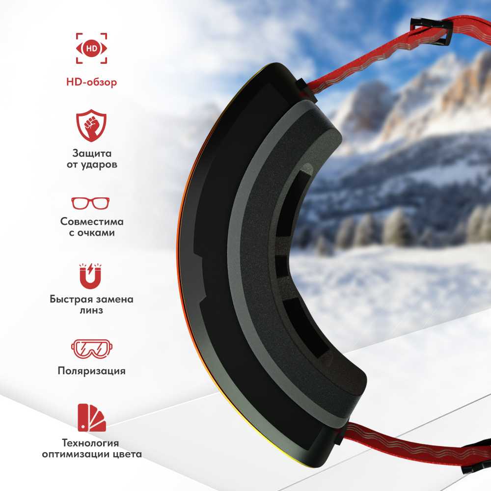 Особенности : | УФ-защита, быстрая смена линз, вентиляция, защита от запотевания, зеркальное покрытие, ношение поверх очков, поляризационный фильтр, съёмная линза |