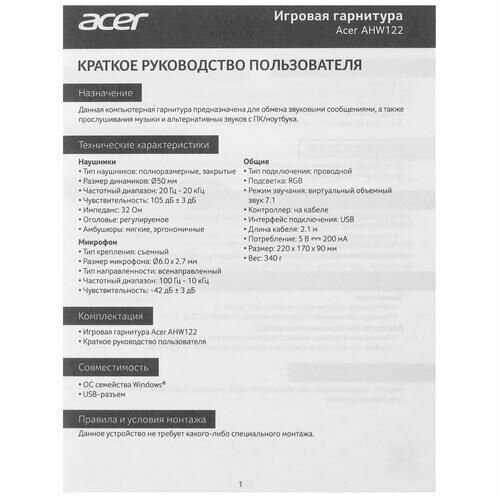 Родное ПО от Acer отсутствует, но пользователи успешно настраивают звук через драйверы для чипа Cmedia (например, от Edifier G2II) или утилиты вроде Equalizer APO. Виртуальный 7.1 активируется через настройки Windows или сторонние программы. -