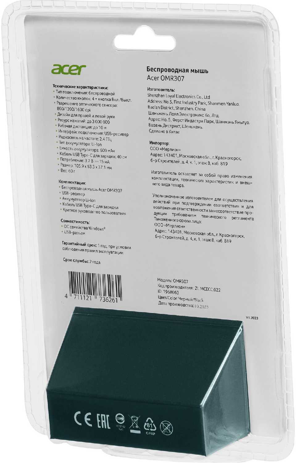 Лучшие цены сегодня на Acer Беспроводная мышь OMR307