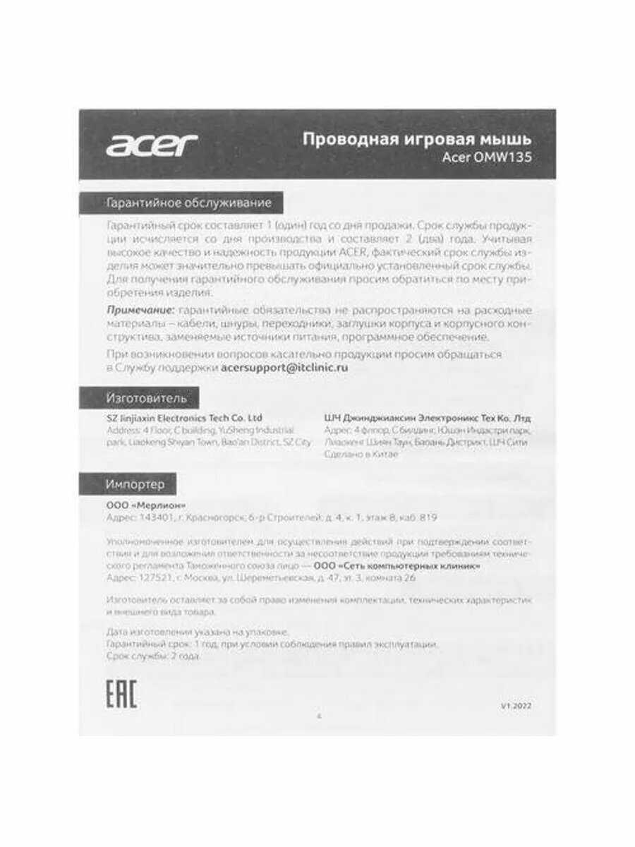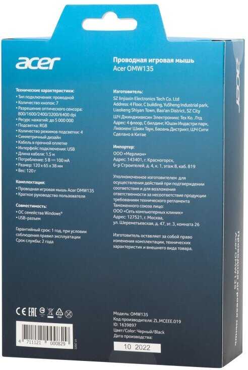 Обзор Acer Мышь компьютерная OMW135 (ZL. MCEEE.019) - мнение пользователей*: