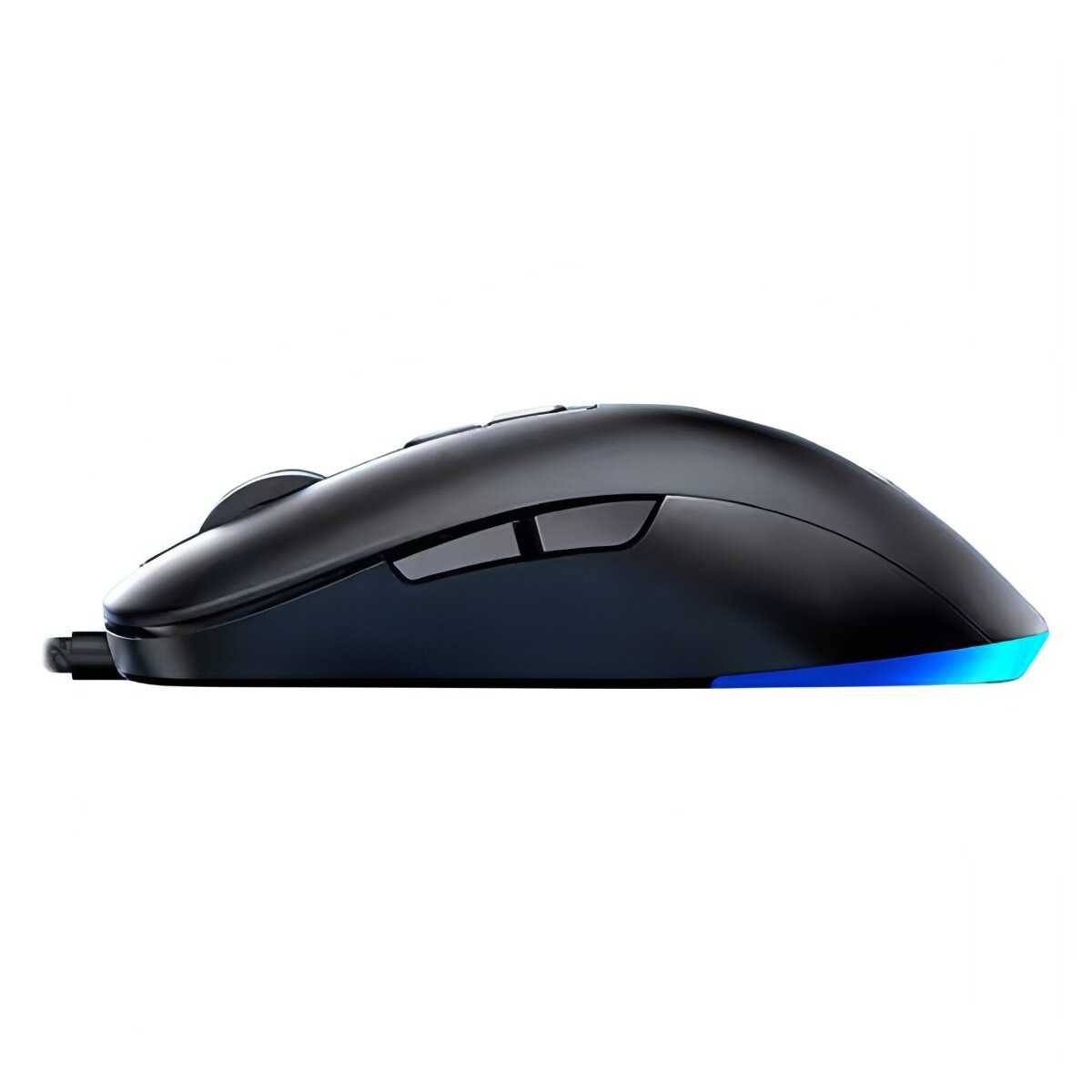 - + Манипулятор, обладающий размерами 66x40x129 мм и весящий 115 г, надежно собран в элегантном черном корпусе, выполненном из качественного пластика. Дополняет дизайн яркая и ненавязчивая RGB-подсветка.