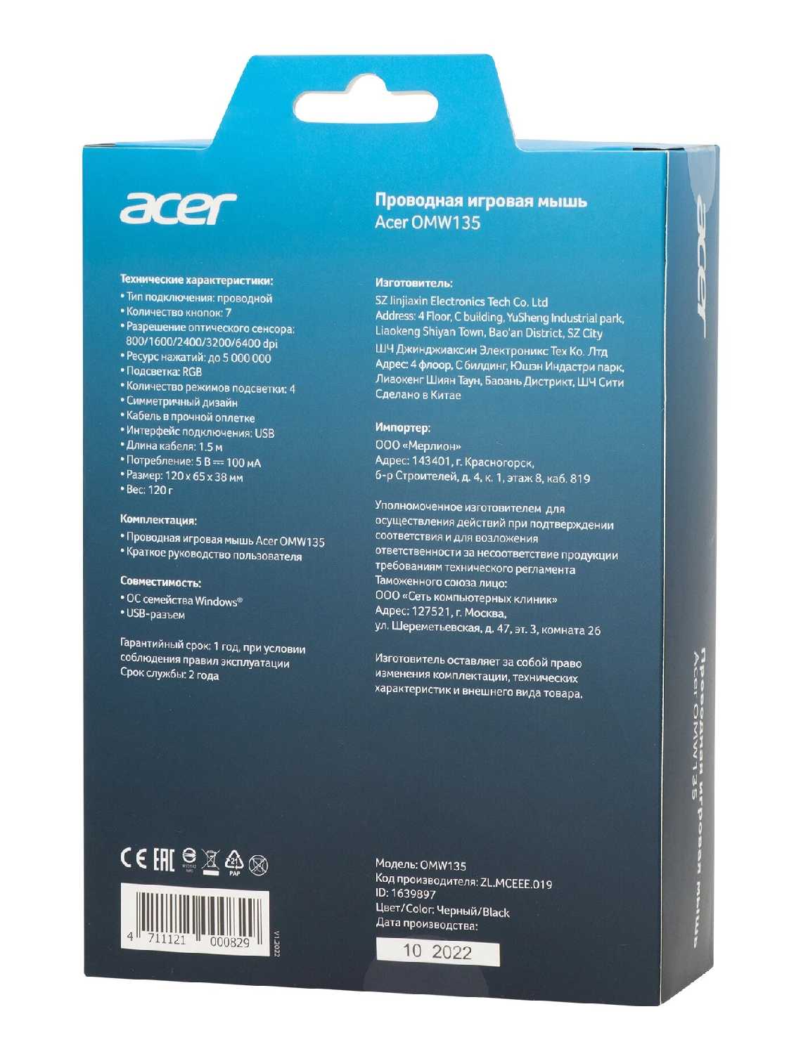 Acer Мышь компьютерная OMW135 (ZL. MCEEE.019?