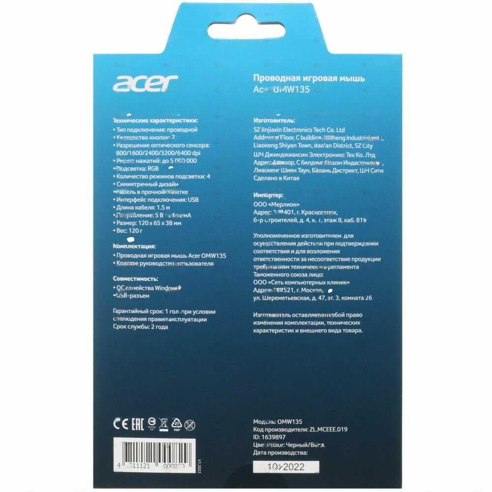 Acer Мышь компьютерная OMW135 (ZL. MCEEE.019?