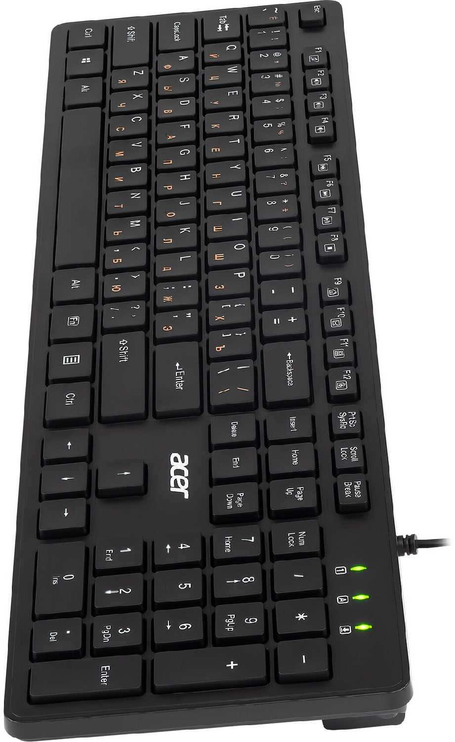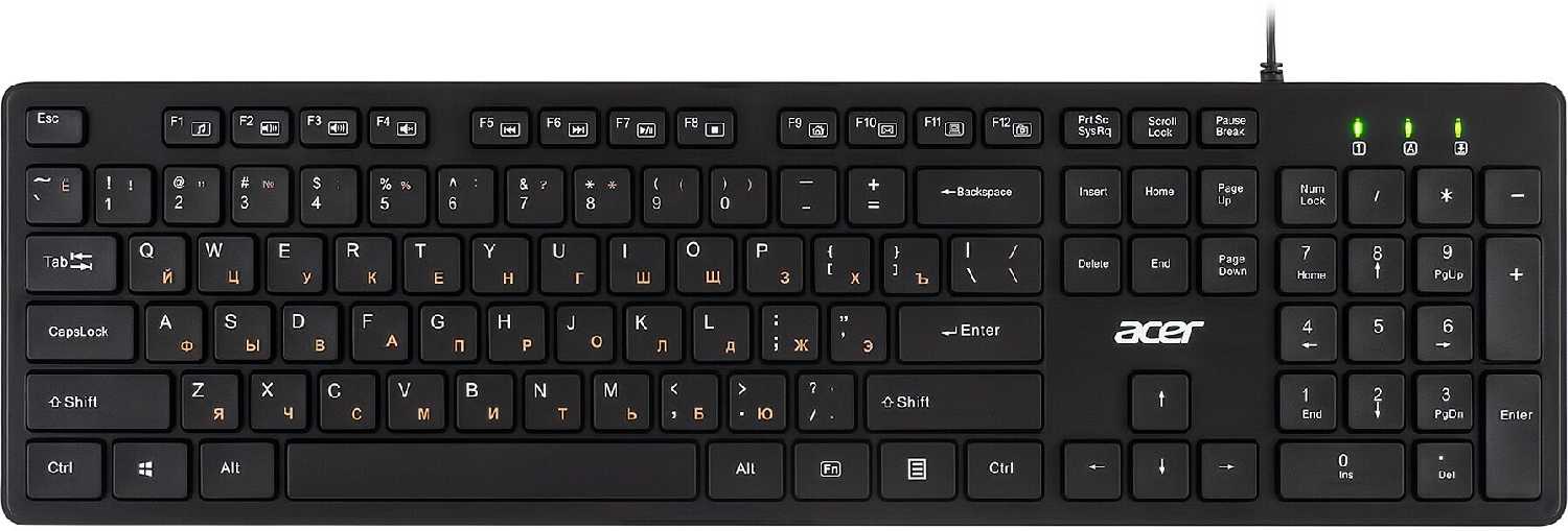 - 104 клавиши включают отдельный цифровой блок и мультимедийные Fn-комбинации.
