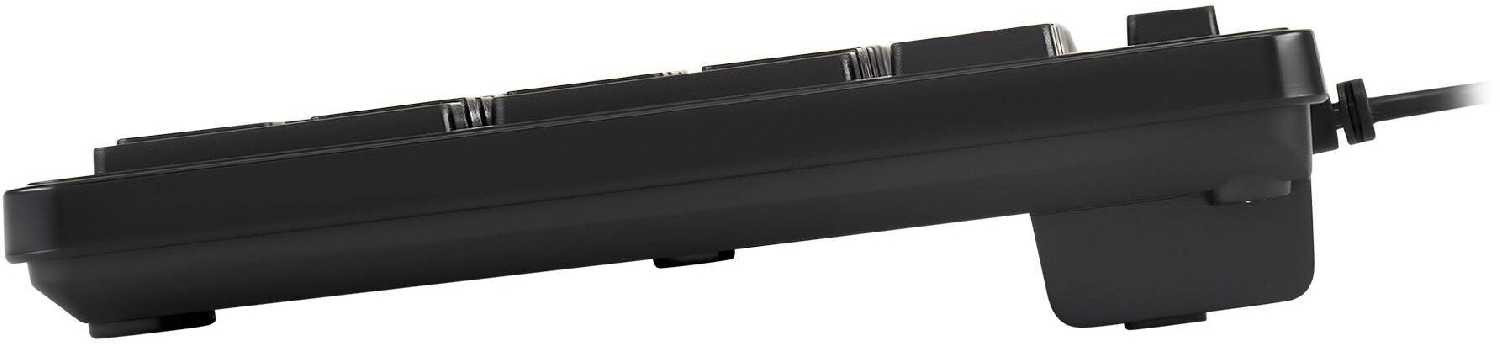 - Высота клавиш 8 мм (ниже стандартных 12 мм) сокращает амплитуду движения пальцев.