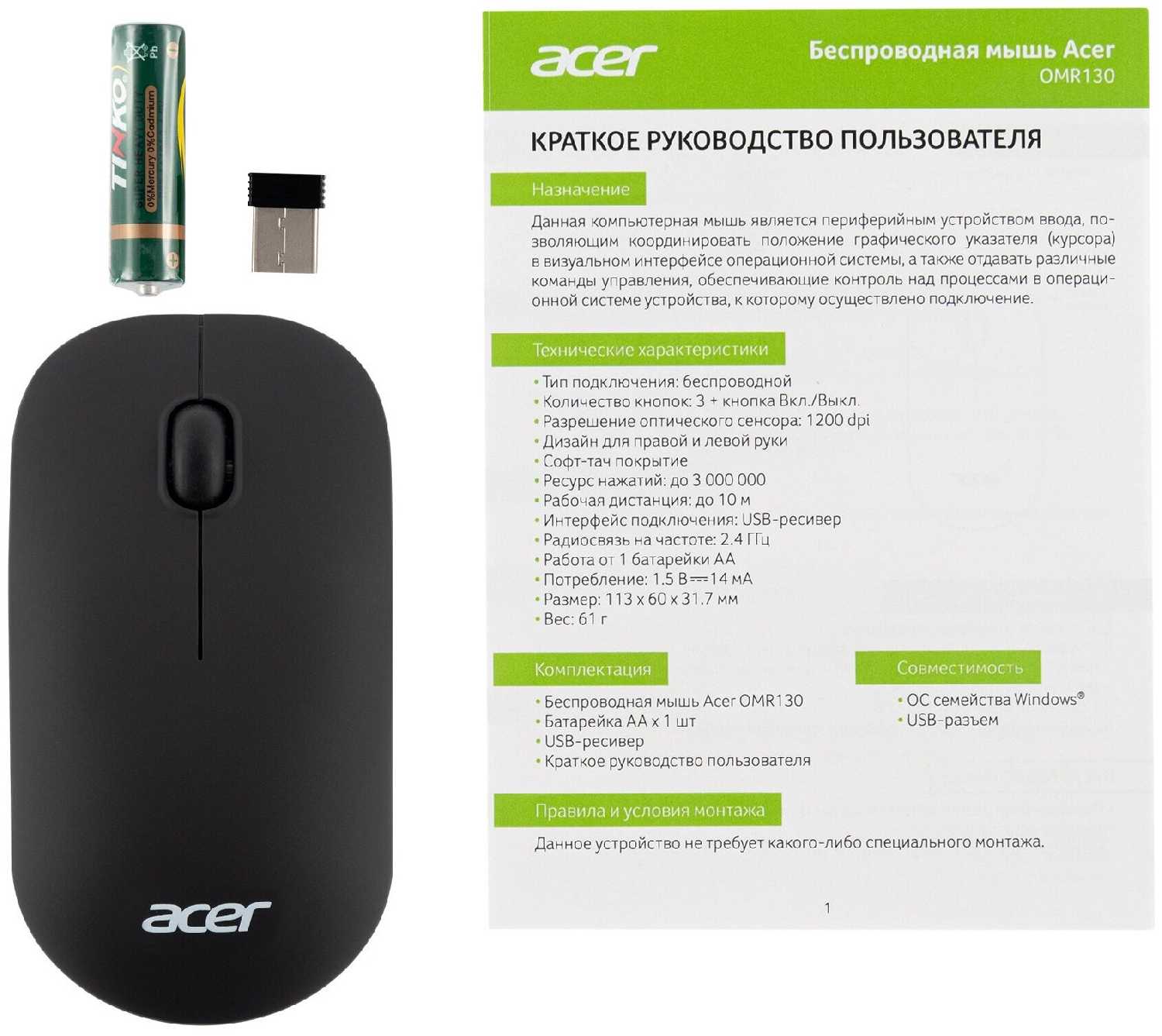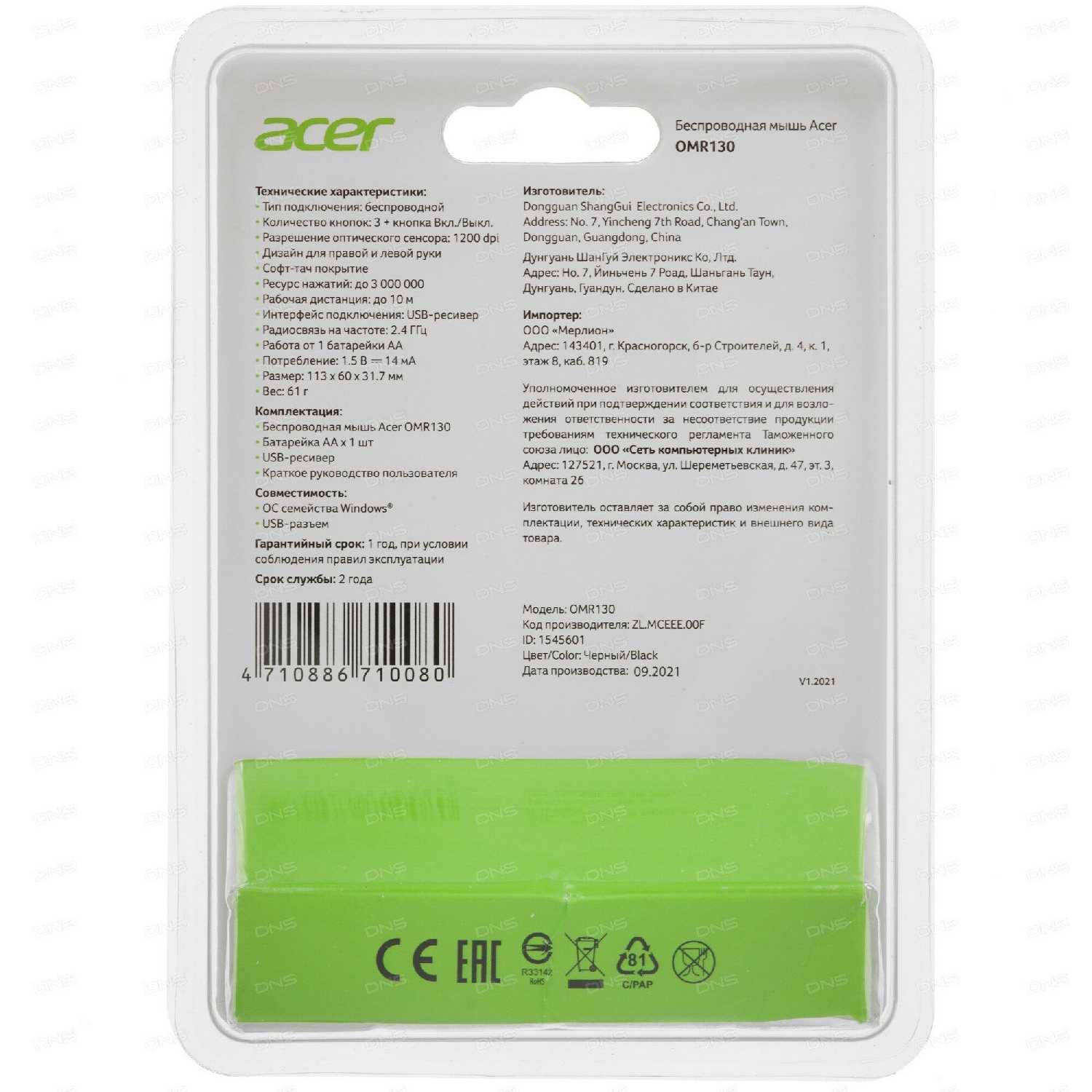 Отзывы о Мышь Acer OMR130 (zl. mceee.00f)