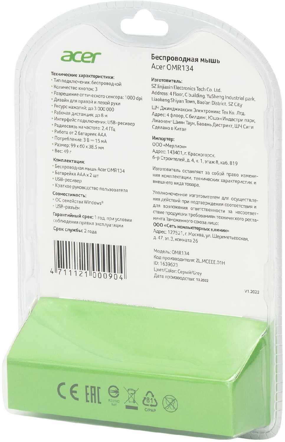 Отзывы о Мышь беспроводная Acer OMR134 (ZL.MCEEE.01H)