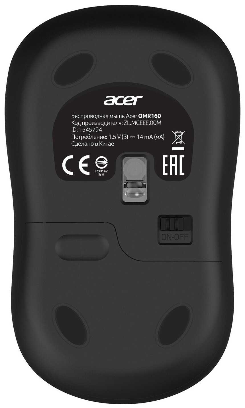 61 отзывов пользователей o Acer OMR160 черный оптическая (1200dpi) беспроводная USB (3but)