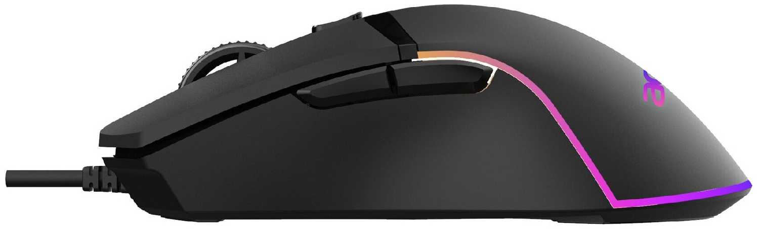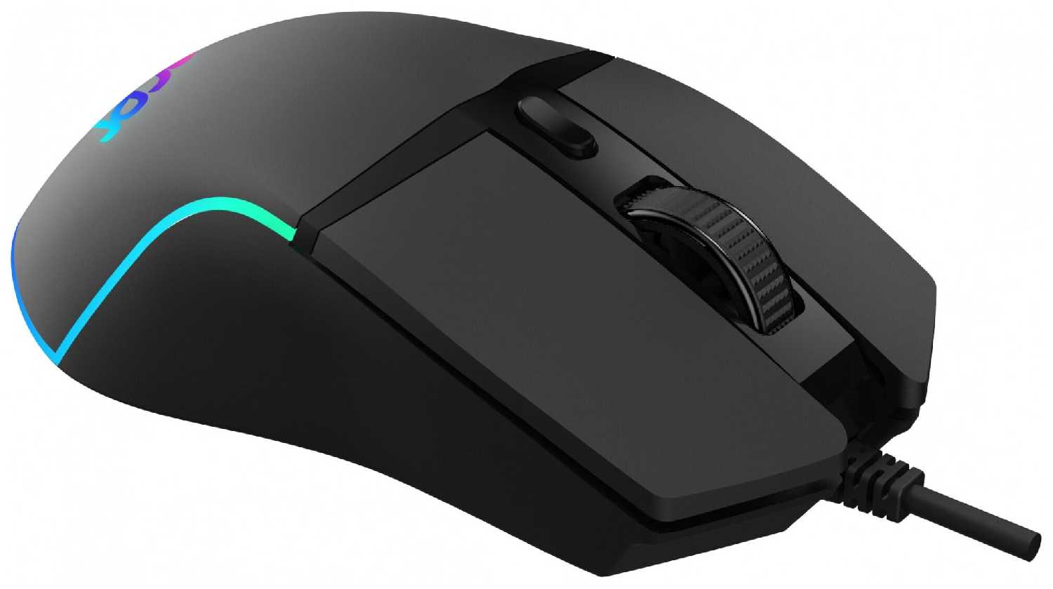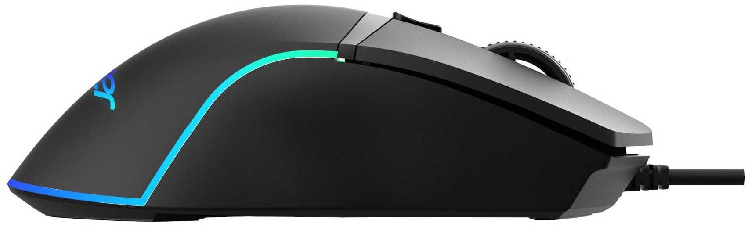 - + Высокая чувствительность сенсора, отсутствие лишних клавиш. Чёткий клик. Удобная форма. Отличные функциональные боковые кнопки вперед-назад. Провод в оплетке. Приятная переливающаяся контурная подсветка. Большие ножки для гладкого скольжения. Оптический сенсор не светит красным