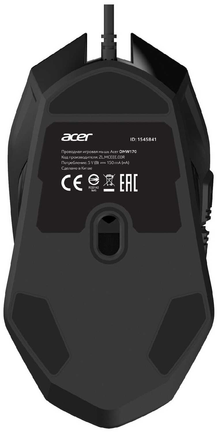 Мышь проводная Acer OMW170 черный (ZL. MCEEE.00R) — 132 отзывов, плюсы и минусы