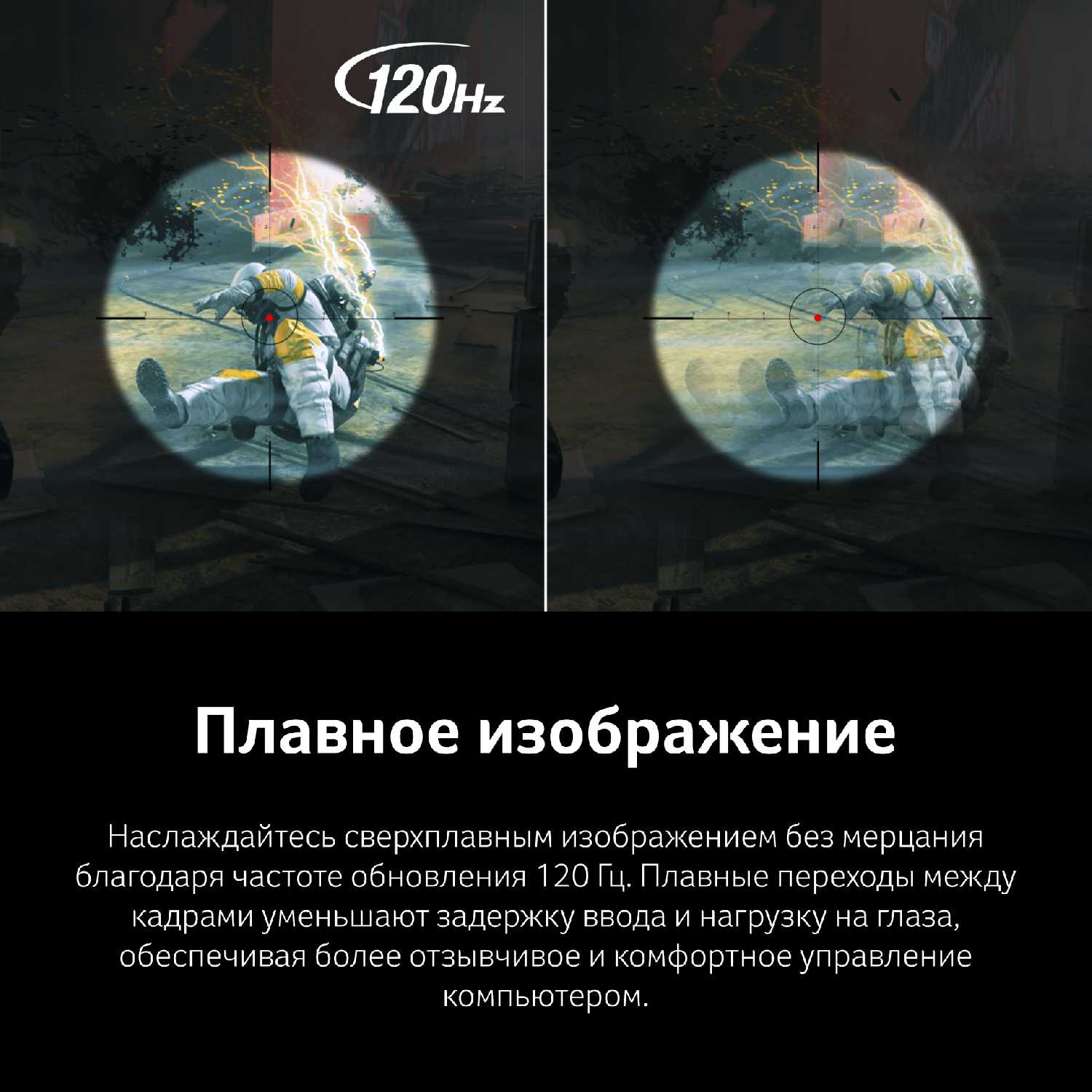 Монитор хорошо справляется как основной экран для игр благодаря 120 Гц и плавной картинке. Реальная частота обновления обеспечивает комфортный геймплей без заметных разрывов. Большая диагональ добавляет immersiveness. Пользователи хвалят его за приятную картинку в динамичных сценах. -