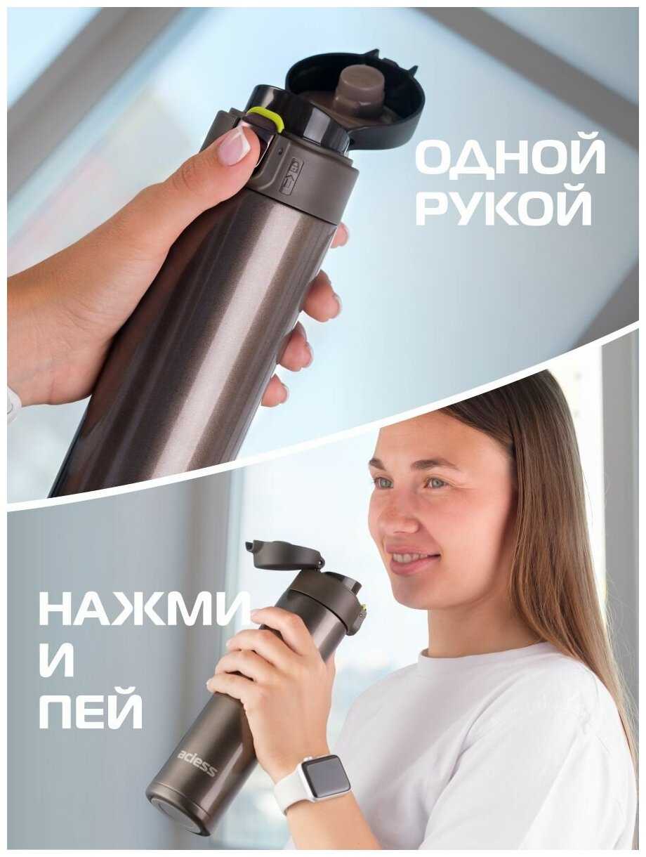 | Особенности : | вакуумный, кнопка-клапан, непроливайка, нескользящее дно, носик для питья, отверстие для питья в крышке |
