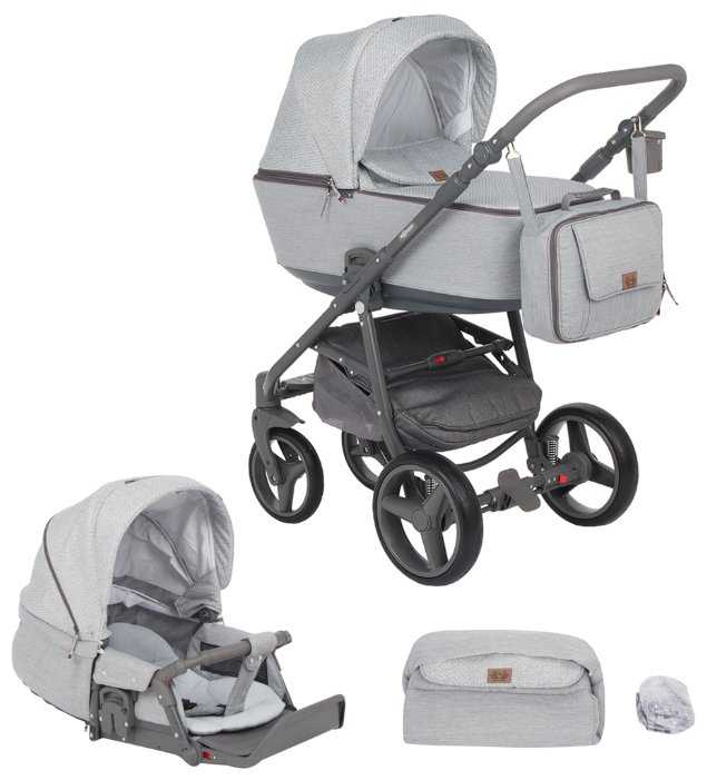 - + Коляска выглядит стильно, у нас в расцветке ткань чёрная/экокожа серебряная, шасси и колёса серебряные. Маневренная, проходимая, в комплекте много допов: москитная сетка 2 шт, одна из них на молнии и хорошо защищает от мошкары, муфты для каждой руки на холодную погоду, подстаканник, дождевик, удобная сумка, проветриваемая люлька, удобное окошко при закрытом от ветра капоре. Каждое колесо быстро и удобно снимается одной кнопкой.