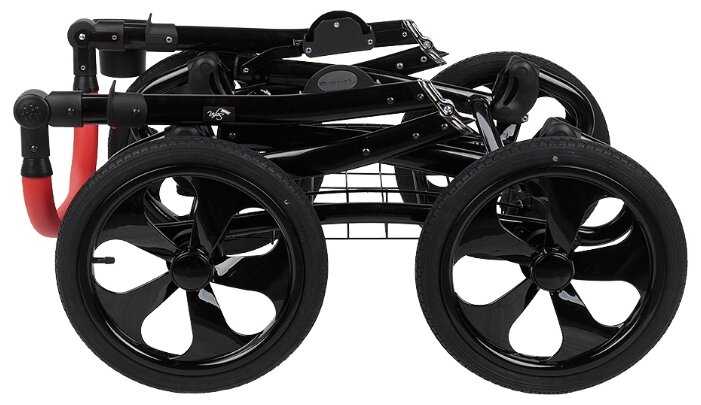 - + Пройдет везде! Живем в деревне, дорог нет, а весной и осенью - нет вообще. Этой коляске все равно: глина, гравий, снежная каша - идет без особых усилий, при этом ребенка не трясет. Для бездорожья или снежных зим - рекомендую всем, никакие бордюры не страшны, на все пандусы заезжает (в отличие от трехколесных). Все снимается, стирается легко (в машине побоялась стирать только накидку от люльки). Шасси складываются быстро и легко, в багажник легковой машины помещаются, в небольшой паркетник - ставим в багажник, не снимая люльку/прогулочный блок. Дождевик хороший, полностью закрывает все, также и накомарник. Маневрировать удобно - слегка нажимать на ручку, "отзывается" быстро.