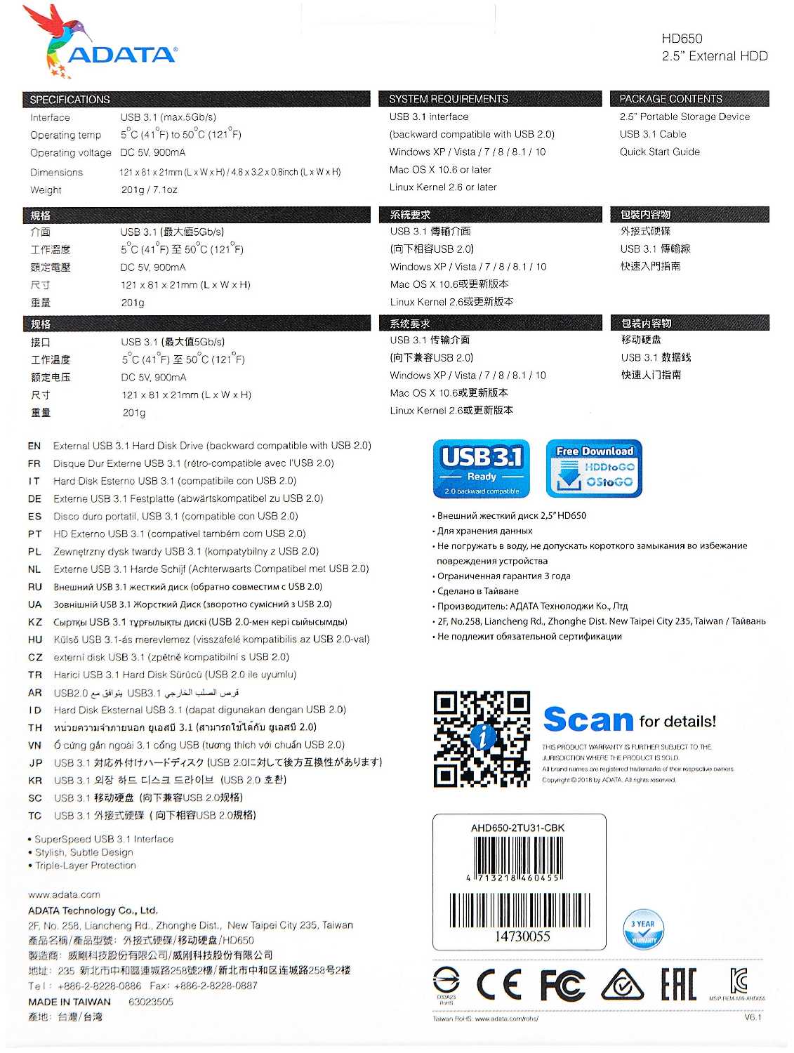 Отзывы о Внешний HDD ADATA DashDrive Durable HD650