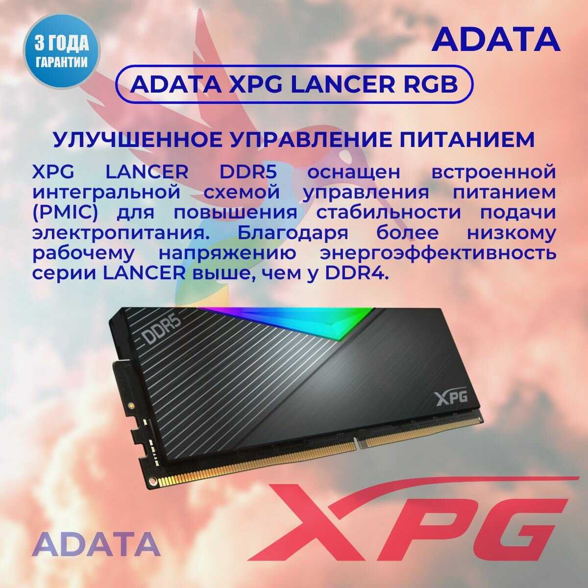Отзывы о Оперативная память XPG A-Data Lancer RGB (AX5U7200C3416G-DCLARBK) DDR5 32GB 7200MHz