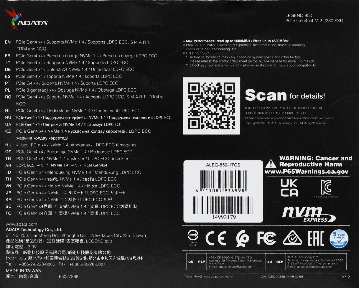 Характеристи ADATA M.2 ALEG-850 (1TCS)