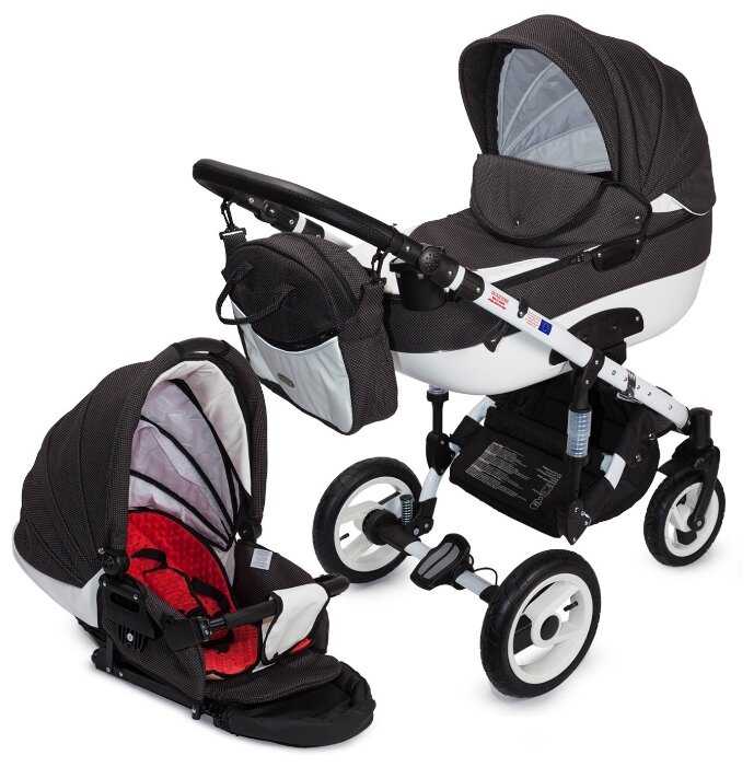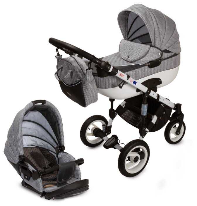 - + Классическая коляска три-в-одном это удобно, потому что по крайней мере год, а то и полтора думать о коляске больше не нужно. Я немного опасалась за качество отдельных вещей из набора, кто их знает, этих производителей. Но все оказалось на стабильно хорошем уровне. Пластик качественный и достаточно плотный. Колеса большие и надувные. Такая конструкция вместе с пружинными амортизаторами хорошо гасит колебания и тряску, которая неизбежно возникает при езеде по не очень ровным тротуарам и дорогам. Крепления надежные, ремешки и замок правильные, с запасом на вырост. Люлькой пользовались около полугода и то последние три недели дочка уже лежат не очень хотела. Сейчас ездим в прогулке и ею вполне. А еще она совсем не тяжелая.