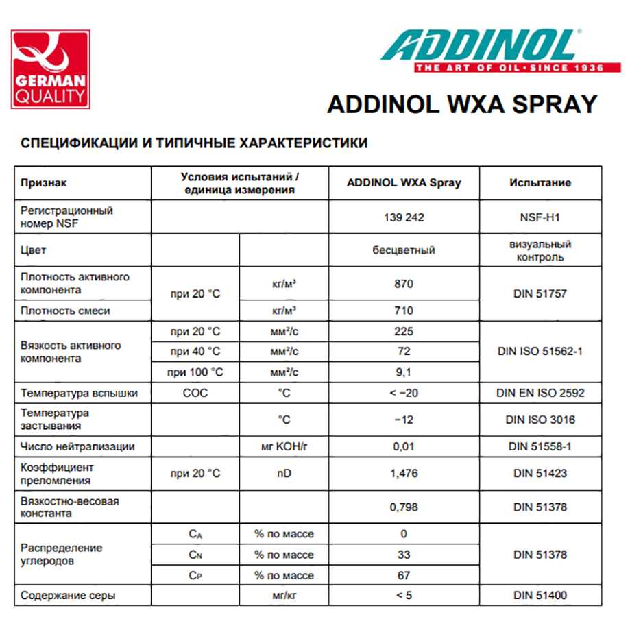 Лучшие цены сегодня на ADDINOL WXA Spray (500 мл)