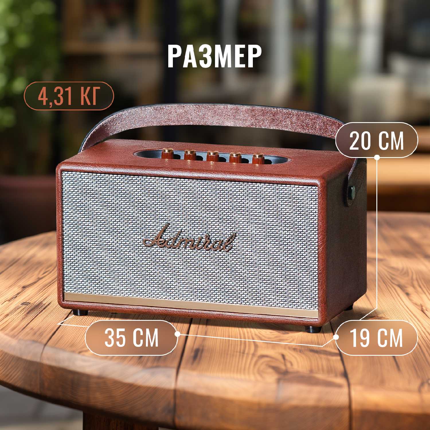 - Псевдокожаная отделка и винил создают премиальный вид, не уступающий именитым брендам вроде Marshall.