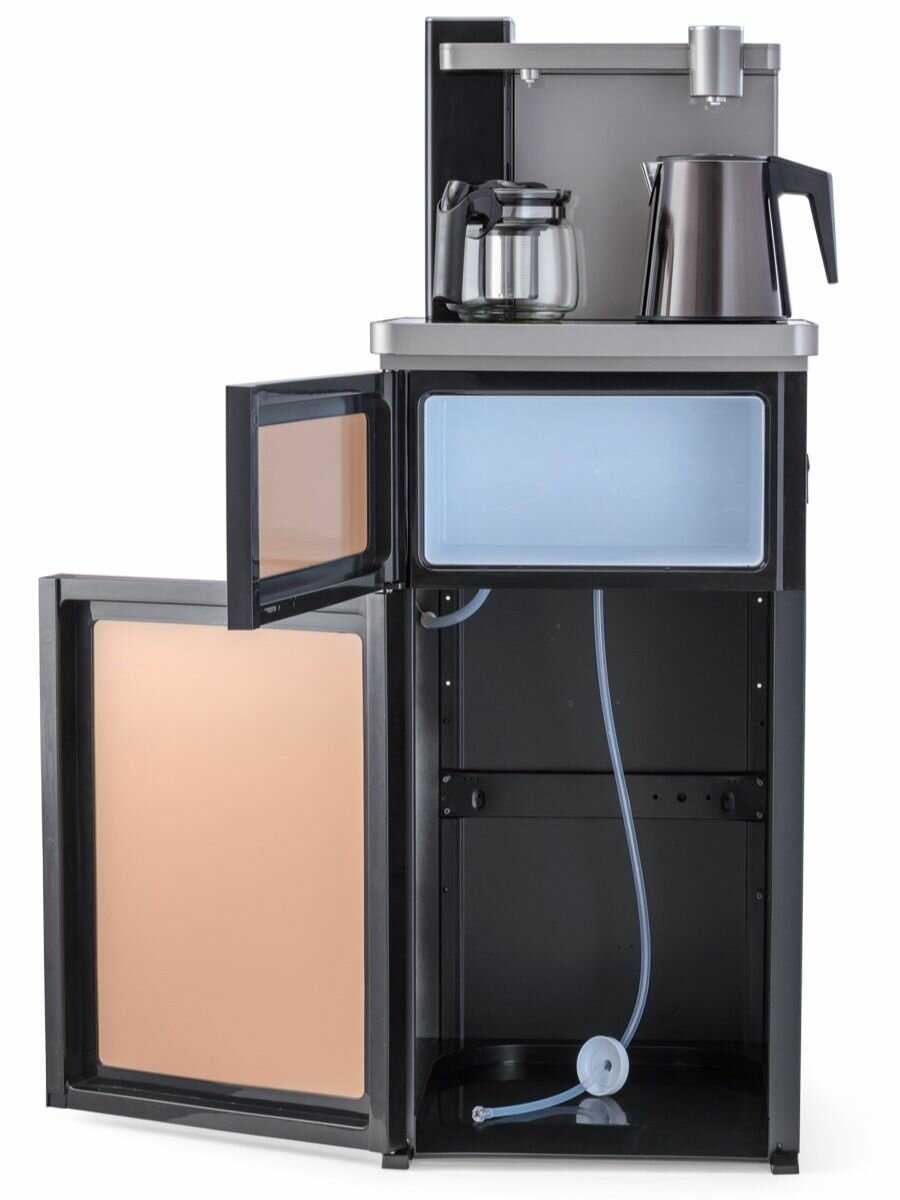 – Сложно всё реализовано, не как обычно в куллерах: нажал красную кнопку – потекла горячая, синюю – холодная. Для холодной ставишь куллер на охлаждение и вуаля, 15 мин., она готова 14-15 градусов. Хочешь тёплую – наливаешь в заварник и включаешь подошрев, как на плите. Горячую – заливаешь в чайник и кипятишь.