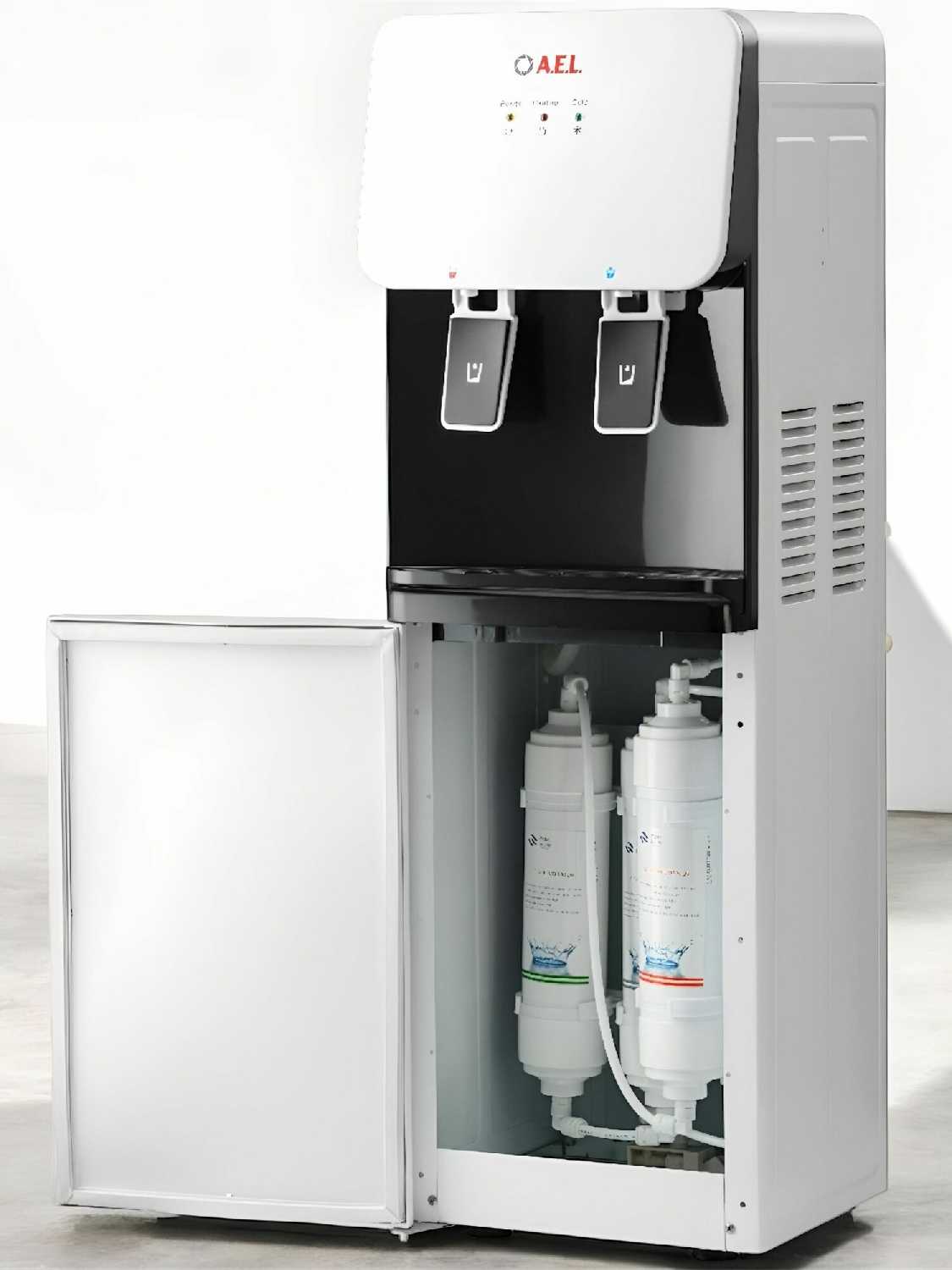 - + Компактный, невысокий, высота до столешницы. Хороший вкус воды.