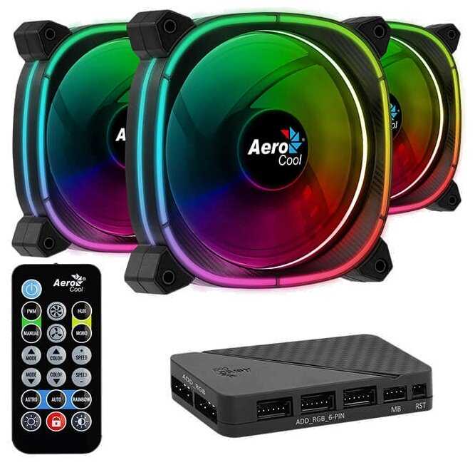 Aerocool Astro 12 PRO отличный комплект 120-мм вентиляторов и классной светодиодной подсветкой ARGB 16,8 млн цветов.