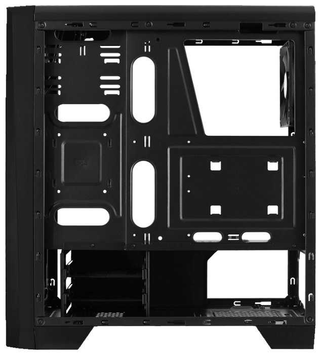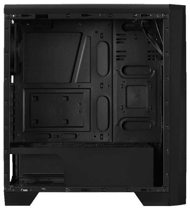 Внешний вид сыну понравился, подсветка. Есть разные отсеки для дисков, разъёмы выведены на панель спереди. Низкая цена(брал за 3900)