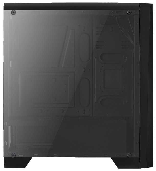 Корпус очень душный внутри, так как нельзя нормально в корпусе с обычной комплектации поставить корпусные вентиляторы. Один ставится на выдув сзади и два на вдув снизу. Стекло из пластика и очень легко царапается.