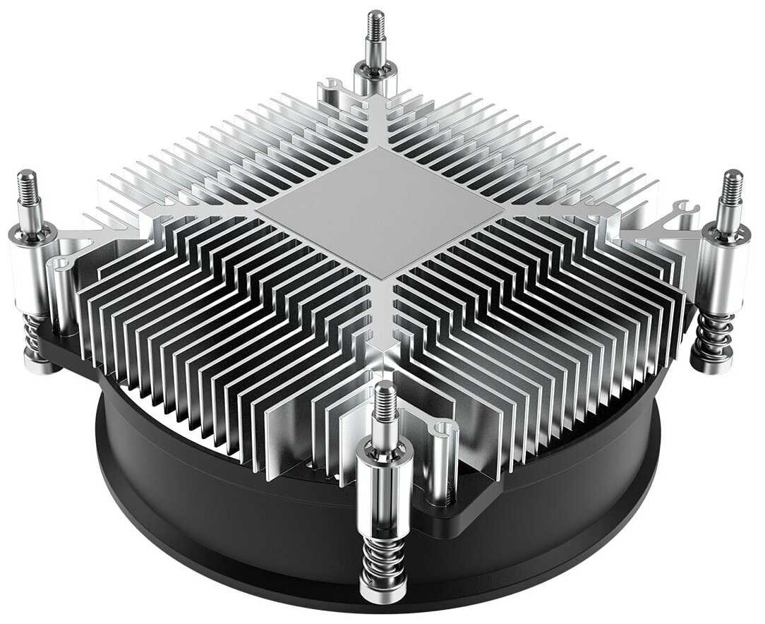 Конструкция, качество сборки и удобство монтажа: Конструкция кулера получила положительные оценки за надежность и продуманность ключевых элементов. Низкопрофильный алюминиевый радиатор и компактные габариты являются его главным преимуществом, позволяя без проблем устанавливать его в сверхкомпактные корпуса стандарта Mini-ITX, где высокие башенные кулеры физически не помещаются. Качество сборки высокое: пользователи отмечают, что все компоненты подогнаны идеально, ничего не люфтит и не дребезжит даже на высоких оборотах. Крепление к материнской плате осуществляется при помощи металлической прижимной пластины и винтов, что обеспечивает надежный и равномерный прижим основания к теплораспределительной крышке процессора, в отличие от штатных кулеров Intel с пластиковыми защелками. Важным удобством является наличие предварительно нанесенного слоя термопасты в виде аккуратной сеточки, что экономит время на сборку. Однако некоторые пользователи обратили внимание на относительно небольшую площадь основания радиатора, которая, по их мнению, может не полностью покрывать всю поверхность крышки современных процессоров, что потенциально снижает эффективность теплоотвода. Монтаж в целом прост, но требует аккуратности и предварительной фиксации пластины на тыльной стороне материнской платы.