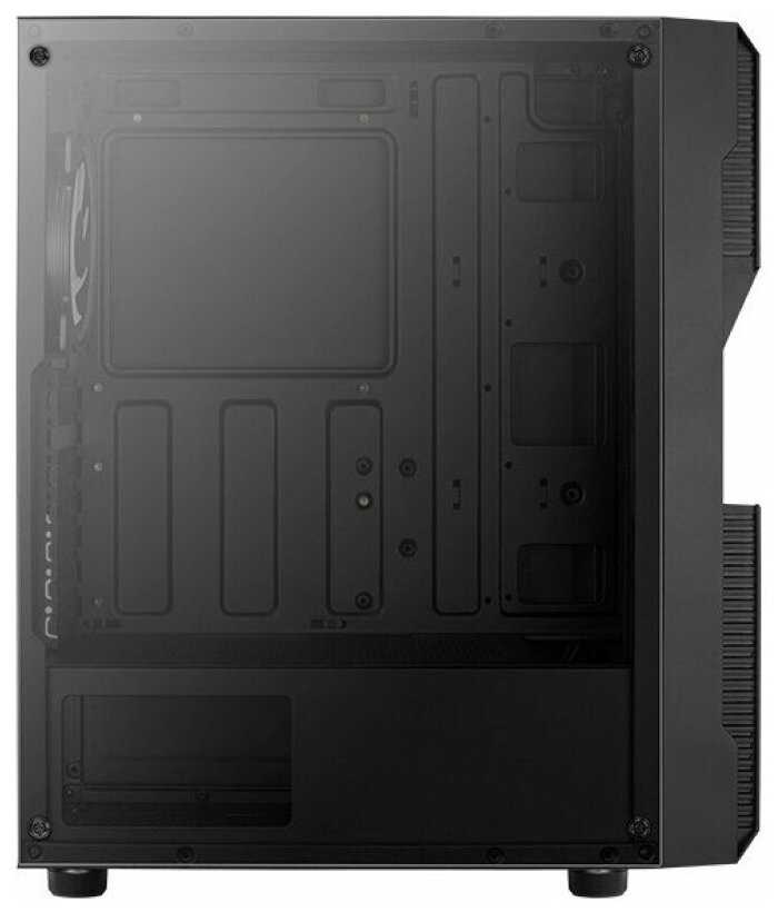 Корпус Aerocool вызывает неоднозначные оценки из-за толщины металла: многие пользователи отмечают, что стенки легко гнутся даже при умеренном нажатии, а резьба под крепёжные винты часто срывается, особенно при повторной сборке. Резиновые уплотнители между стеклом и корпусом плохо приклеены — они отваливаются при первом же снятии боковой панели, что вынуждает пользователей фиксировать их самостоятельно. Однако часть рецензентов считает качество приемлемым для бюджетного сегмента, отмечая отсутствие заусенцев и достаточную жёсткость конструкции после установки компонентов. Стеклянная панель, вопреки опасениям, демонстрирует хорошую прочность, хотя крепление на четырёх болтах вызывает сложности из-за быстрого износа резьбы. Встречаются единичные случаи заводского брака, например, кривые корзины для HDD или деформированные элементы передней панели.