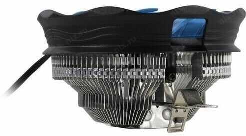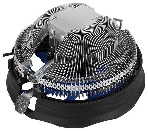 Реальная эффективность охлаждения кулера значительно ниже заявленных 110 Вт. Многочисленные тесты показывают, что он стабильно работает только с процессорами тепловыделением до 65 Вт, такими как AMD Athlon 3000G или Intel Core i3. При попытке охлаждения более мощных процессоров, например, AMD Ryzen 5 2600 или Intel i5 с TDP 95 Вт, наблюдается быстрый перегрев до 90-100°C. Конструкция радиатора из тонких алюминиевых пластин и малая площадь контактной пятки не позволяют эффективно рассеивать тепло от горячих процессоров. -