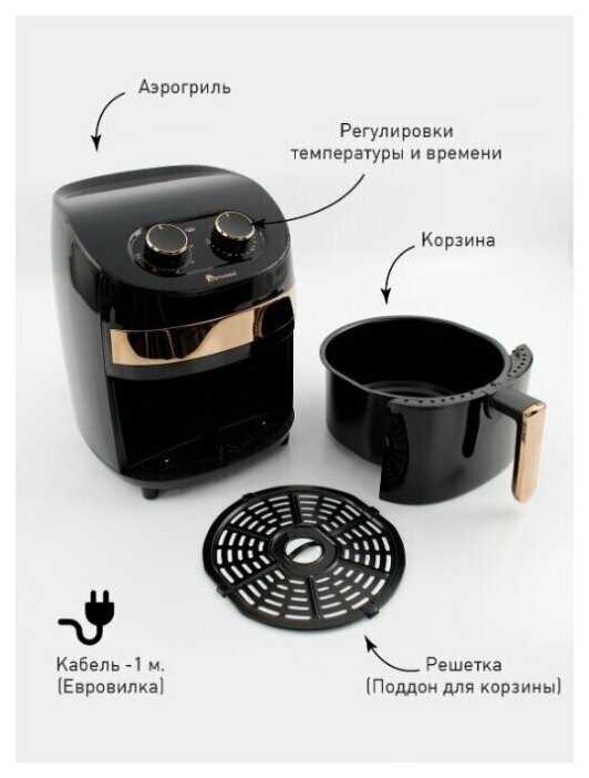 Estares Аэрогриль EASYCOOK 1000W-220V-3.5L-280x280x335-BLACK/GOLD, ESTARES