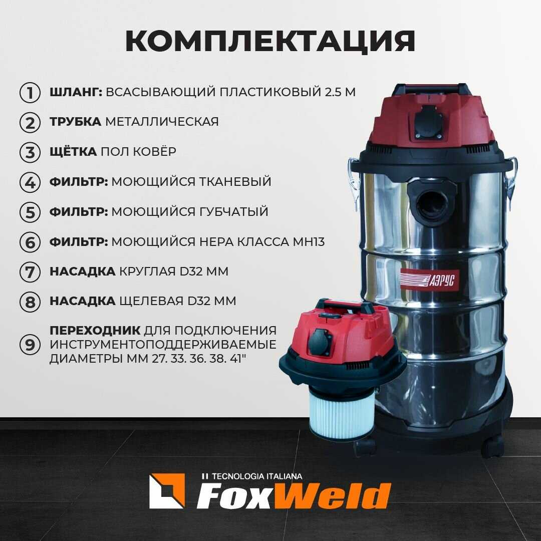 В комплекте : | насадка для ковра, насадка для пола, трубка удлинительная, шланг, щелевая насадка |