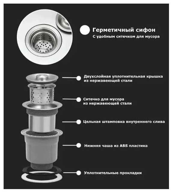 - + внешний вид+, вместительность+, ведёрко для сбора шлама+, сифон в комплекте.соответствует строгому современному +дизайну.