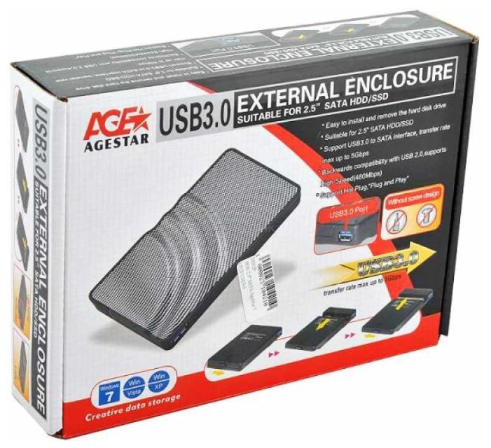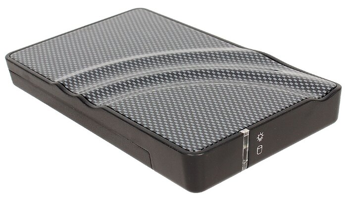 не плохой внешний вид. - - Крышка закрывается не плотно, защелка запирающая крышку норовит выскочить из паза. После внедрения обычного HDD 2.5" WD на 1TB между крышкой и диском огромный люфт, внутри диск болтается с огромным грохотом.