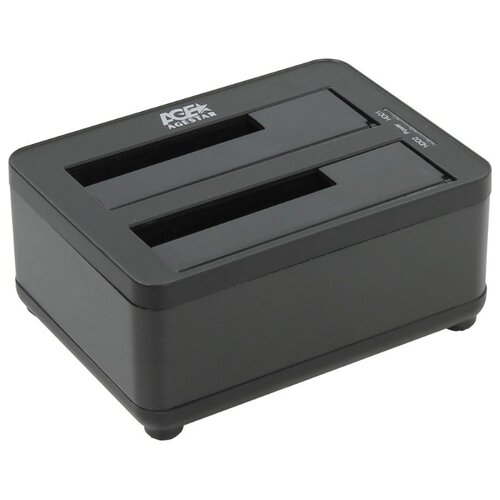 - Позволяет подключать и использовать два жёстких диска (3,5" и 2,5") без разборки ПК, что упрощает доступ к архивам и замену носителей.
