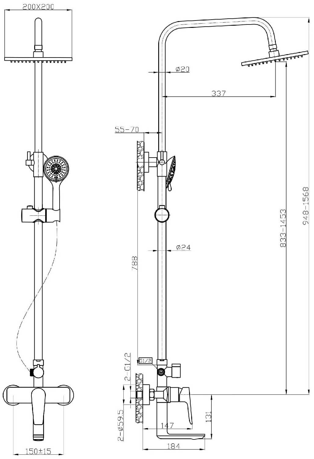 Длина штанги от верхнего душа до смесителя 1,1 м, а не 1,4 как указано.