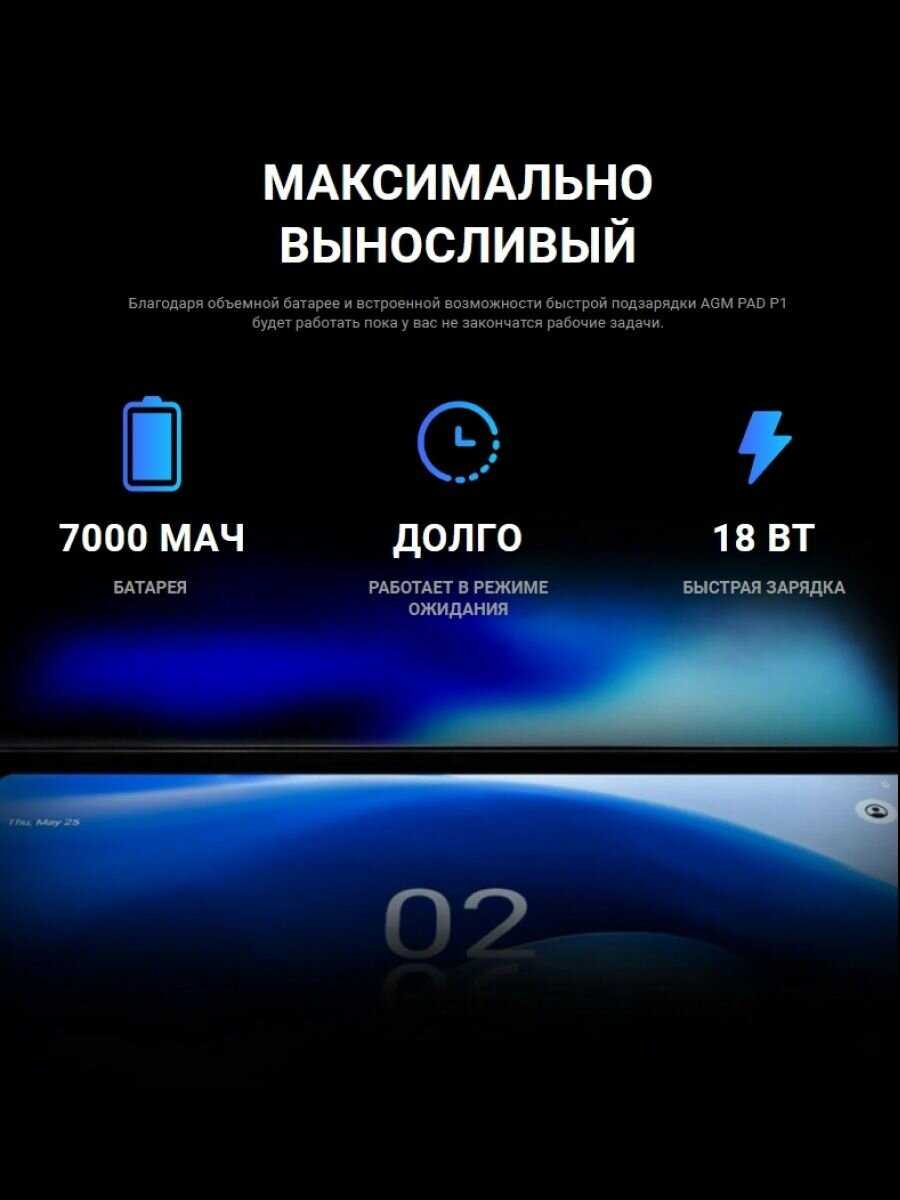 у меня это уже второй защищённый планшет, есть с чем сравнить( hotwav r6 ultra), процессор однозначно здесь быстрее по с равнению с хотвав, объем памяти у них одинаковый, АКБ конечно в AGM меньше по объему, но соответственно и вес девайса наполовину легче. Камеры есть но они чисто для того что бы были, что ими фотографировать я не знаю). В комплекте из коробки сразу идёт защитный чехол что очень приятно, а вот наклеить защитную пленку на экран почему то не удосужились. На коробке по мимо защиты от пыли и влаги указана защита по военному стандарту, вот с этим есть некоторые сомнения, либо маркетинговый ход, либо настолько уверены в себе. На hotwav защита по военному стандарту очевидна, здесь как то все это выглядит сомнительно. Зарядки уверенно хватает на день с инетом, играми, месенджерами. Все даки 7000 махов не так много для планшета, ну или просто ни как не могу отвыкнуть от 15600 на предыдущем планшете) где заряда с лихвой хватало ну на ВСЁ И НАДОЛГО)А так аппарат достойный, качество сборки на уровне, надеюсь что будет радовать и дальше, и снова не отожмут детишки)