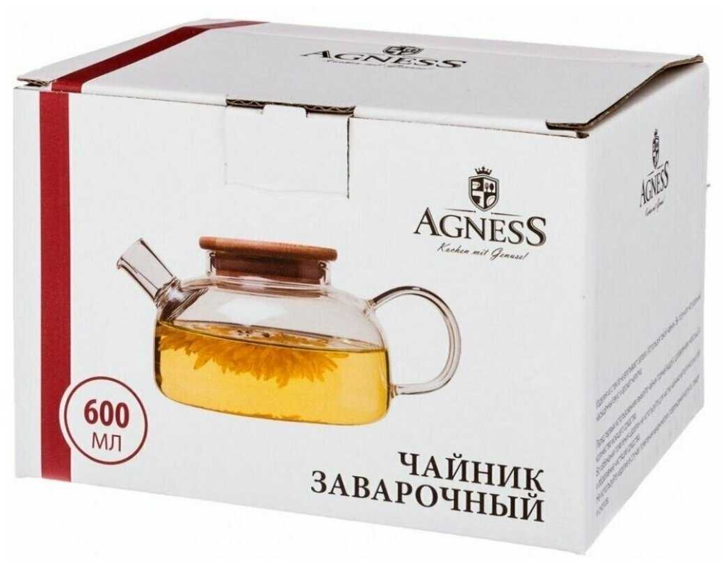 Характеристи Agness Заварочный чайник с бамбуковой крышкой 250-119, 600 мл