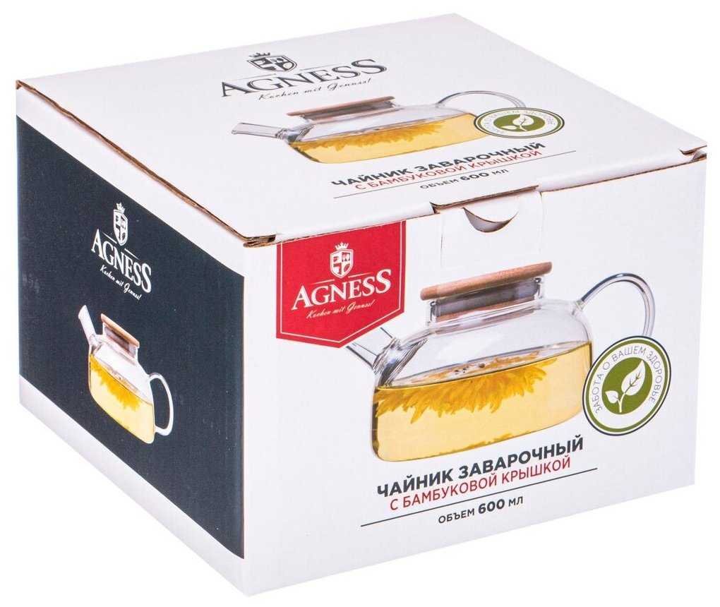 34 отзывов пользователей o Agness Заварочный чайник с бамбуковой крышкой 250-119, 600 мл
