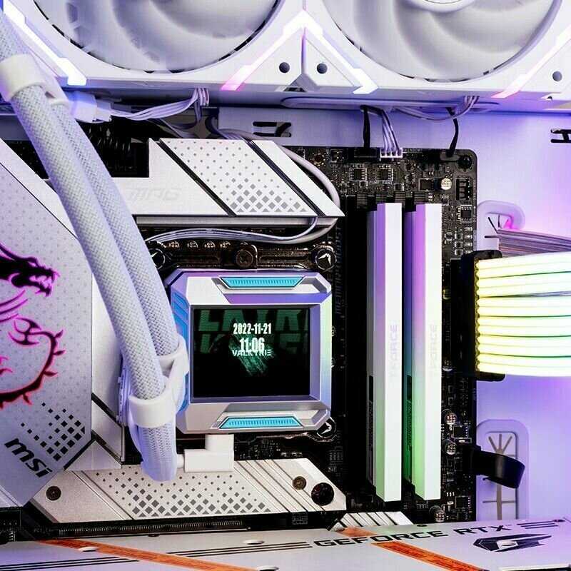 - ARGB-подсветка на вентиляторах и радиаторе, лаконичный стиль подходит для white-сборок и тематики Warframe.