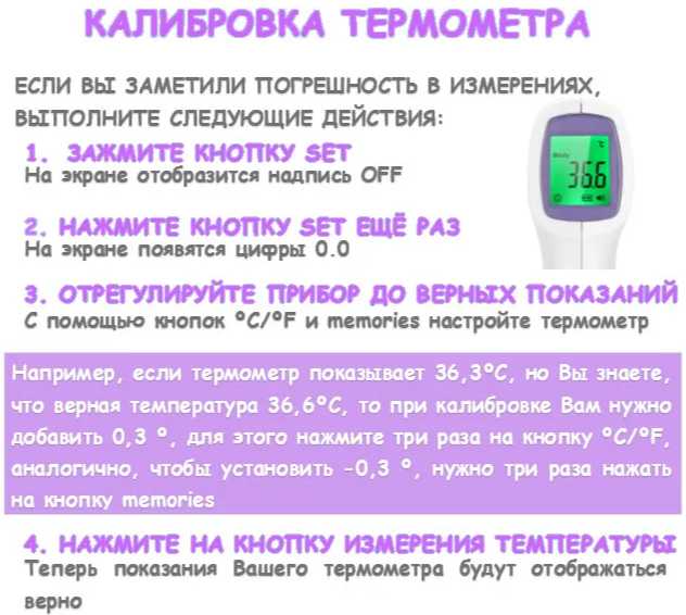 По началу измерял не верно и даже думала вернуть.... В отличии от ртутного и проверенного электронного градусника, разница в показаниях 0,2-0,3 градуса. Хорошо, что в настройках есть функция для калибровки. Настроила на - 0,2 и показания сошлись.