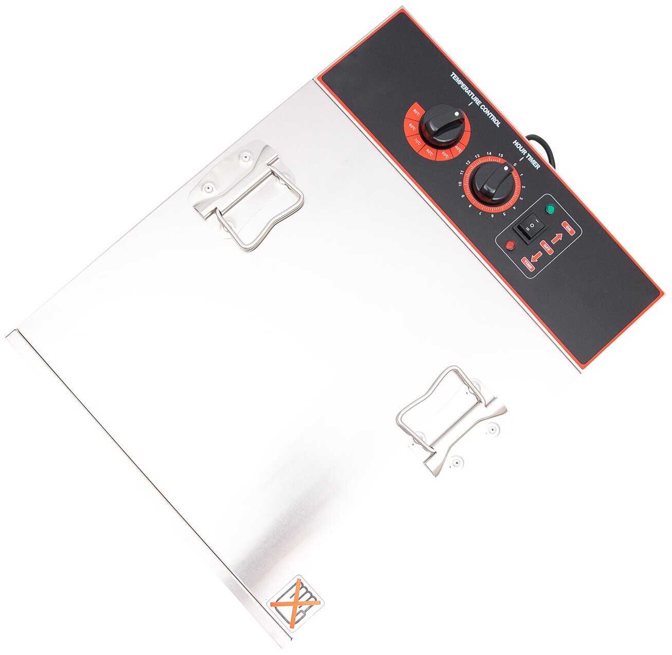 - + Удобно мыть, можно отстегнуть заднюю часть с вентилятором. Температурный режим и таймер все работает без заморочек. Большой объём сразу получается нормальный выход готовых продуктов!)