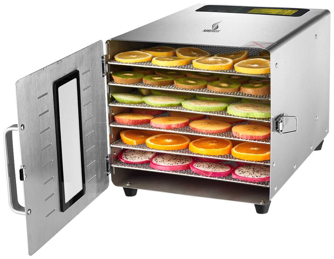 - + Сушилка замечательная. пробовал сушить джерки из курицы- сушит гораздо равномернее и как следствие быстрее (потому что не надо ничего перемещать). Температура до 90 градусов позволяет сделать предварительный прогрев мяса для дополнительной защиты от бактерий. Затем спокойно сушу на 60-65 до готовности - получается замечательно. дополнительно купил тефлоновые многоразовые коврики и мясо не прилипает. На 6 поддоннах убирается около 2 кг куриных грудок порезанных для джерки слайсами толщиной 5-6 мм