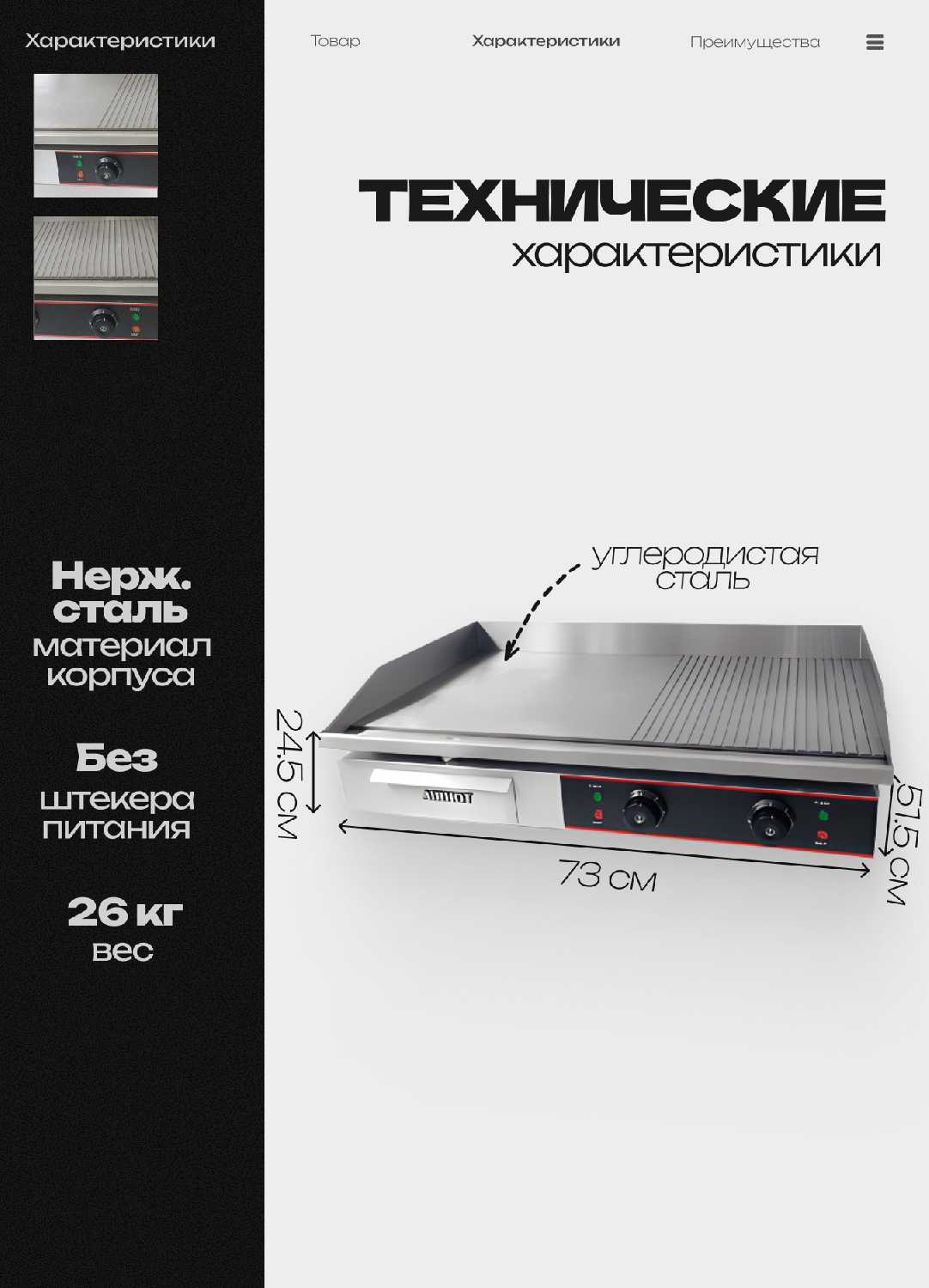 | Дополнительная информация : | комбинированная поверхность, 2 зоны нагрева, поддон для сбора жира |
